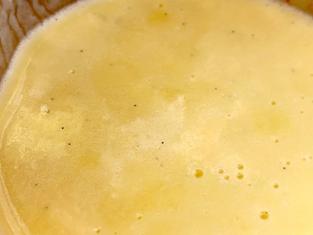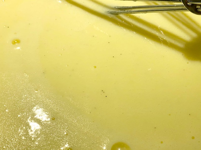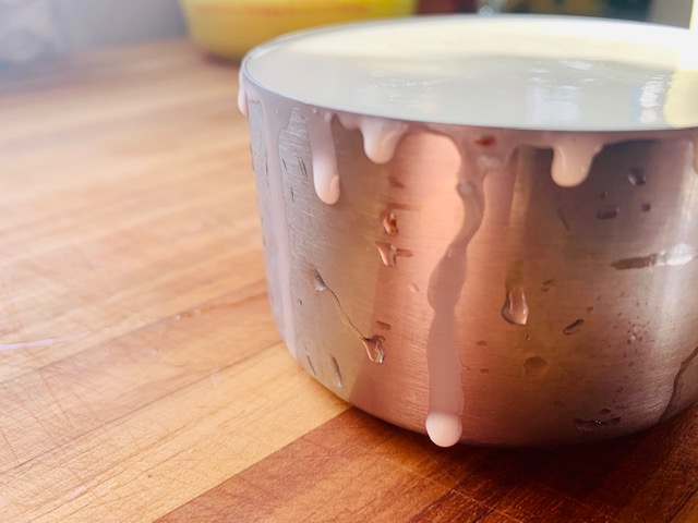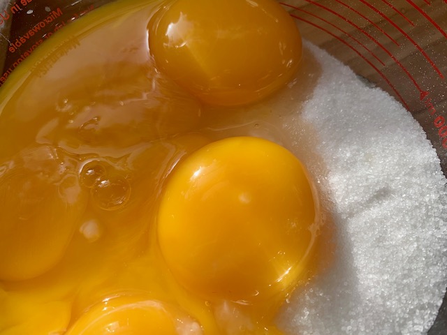 - Mix egg yolks into sugar (I used a 4 cup pyrex measuring cup)