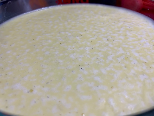 - Remove saucepan from heat and add the COLD and thoroughly shaken buttermilk and vanilla paste to the base. Stir until fully combined.