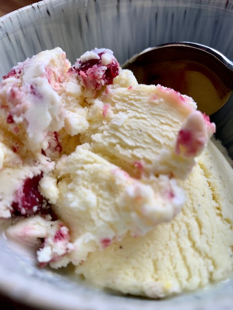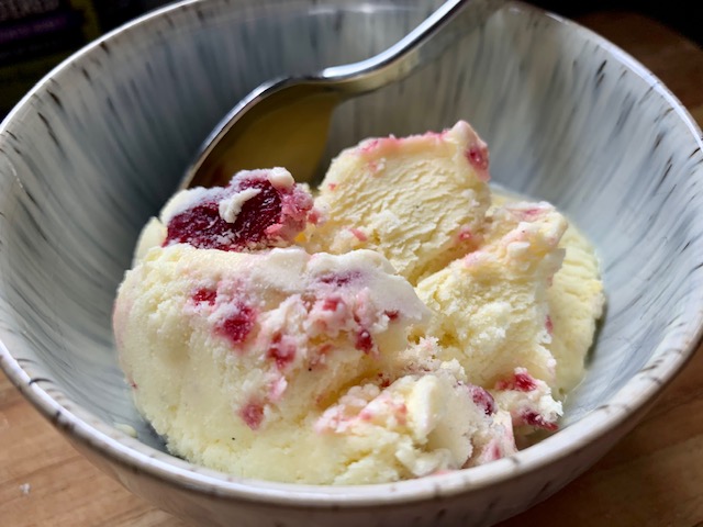 Notes: There clearly was some separation when I chilled the custard. I stirred to try to incorporate it, but it did impact the texture. Right from freezer, you can feel the milk fats. As they warm though and get a bit meltier (is that a word?) it gets SUPER creamy…. this might just not be a ‘eat it from the container’ ice cream. More likely, I needed to use my immersion blender to reincorporate the custard fully before churning, OR I slightly over-churned. That can happen. Did I stop at it’s creamiest consistency? I thought so, but maybe not!