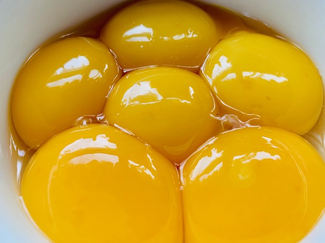 • 2 eggs + 6 yolks (reserve those whites! for either a quick snack scramble or even a new batch of macarons!)
