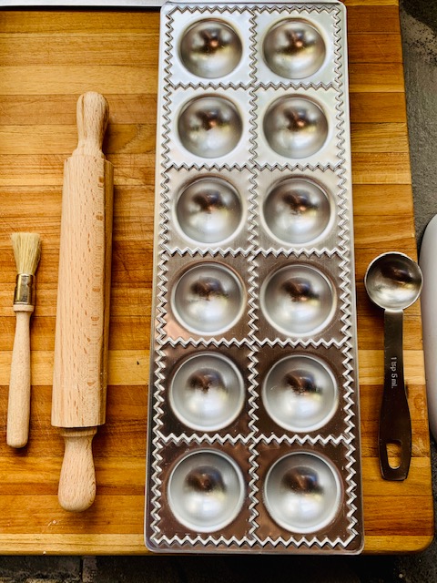 Ravioli Mold, 2″ This is what I use and honestly, kits with the other shapes seem nice, but this puts out 12 perfect ravs in no time and 6 of them is about the perfect amount for a dinner with a side salad and bread. Most homemade ravioli fillings are VERY rich… these are not just cheese ravs! Again, like most special ‘from scratch’ meals, you savor them… if you like having a ton of pasta on the plate, this company has a bunch of molds for smaller (up to 24, 1″ squares). I also prefer the stainless molds to the plastic/metal ones. I always felt like the plastic round mold I had required oiling/flouring… it seems like any dough I used just stuck… which ruined half of them.. :/