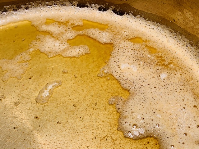 - Wipe down skillet quickly with paper towel removing any chunks of breading/crumb.