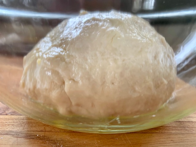 - Oil a large bowl generously, shape your ball then place the dough into the bowl for the first rise. Cover dough ball with a coating of oil then cover the bowl with plastic wrap (leave a little gap for the gas to escape) and a towel. Set in a warm location and let rise for 60 minutes. You want this dough to roughly double in size so depending on the temp of the room you are using, you may need it to go longer!