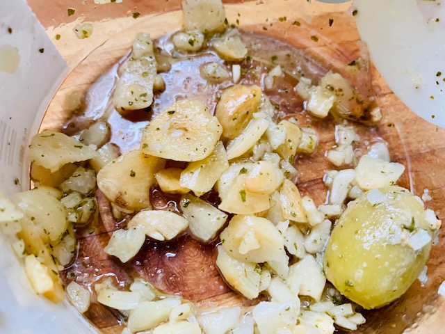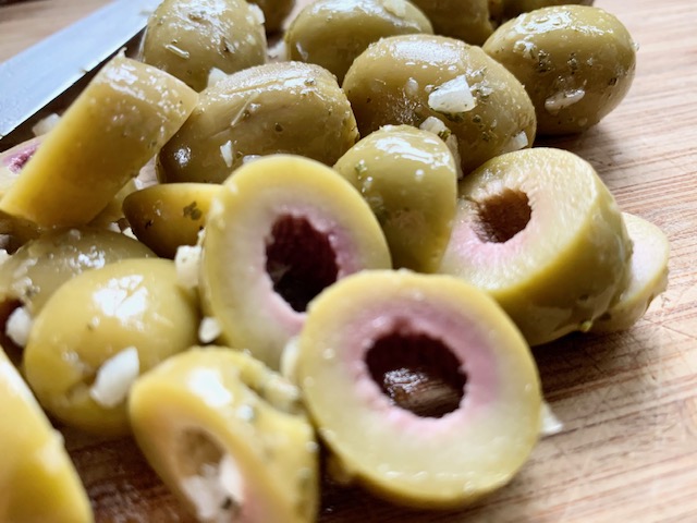 - 1 tbsp minced garlic (if your olive marinade does not have them in it!)