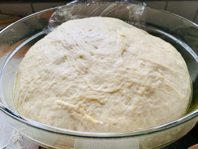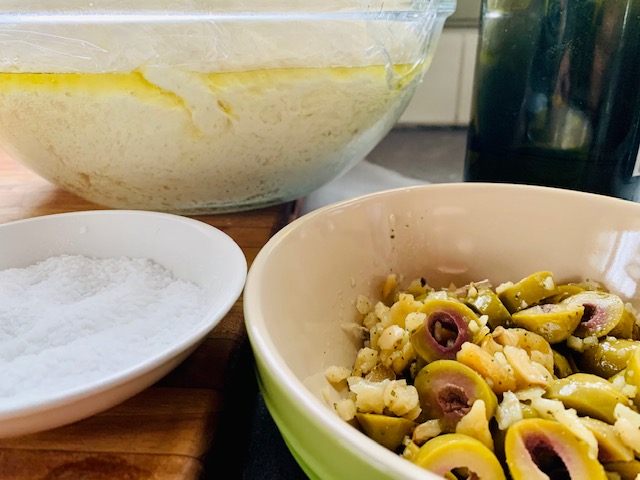 This one is a simple olive dough, with several rests. It’s a dough that I find is best put together with the KitchenAid with dough hook, but it is also able to be made without (albeit with a bit more elbow grease and patience!)