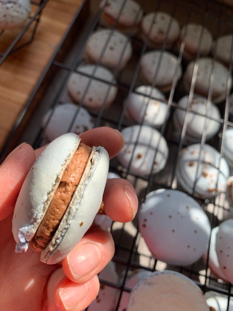 I actually wanted to make two batches (different flavors) this day but I just couldn’t talk myself into having 80+ macs on hand in our home… nor did I want to freeze any at this point.