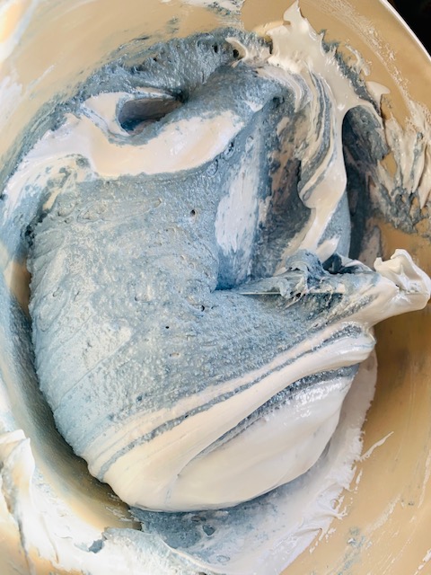 - Light Blue Gel coloring (blue with a teensy bit of brown if using a royal blue, or 1/8tsp of Wilton’s Delphinium Blue)