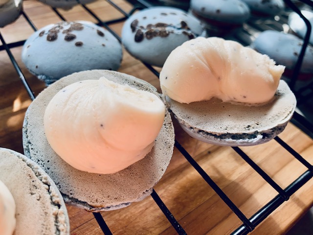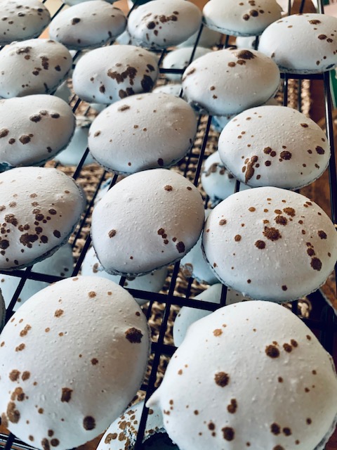- Once shells are all baked, cool them for at least an hour in the fridge before filling (this step is for 2 reasons, to allow any moisture in the shell to be absorbed by the almond flour… creating that amazing ‘crunch and chew’ of a great shell… but also to make sure that you are not piping filling into anything warm risking it melting! EEEK!)