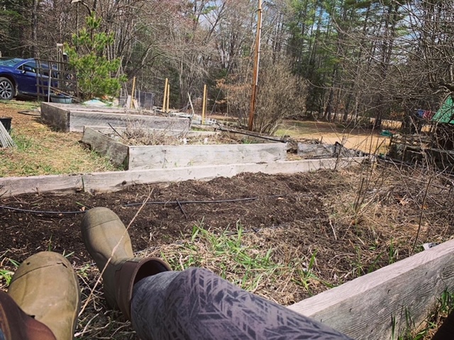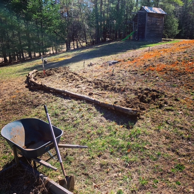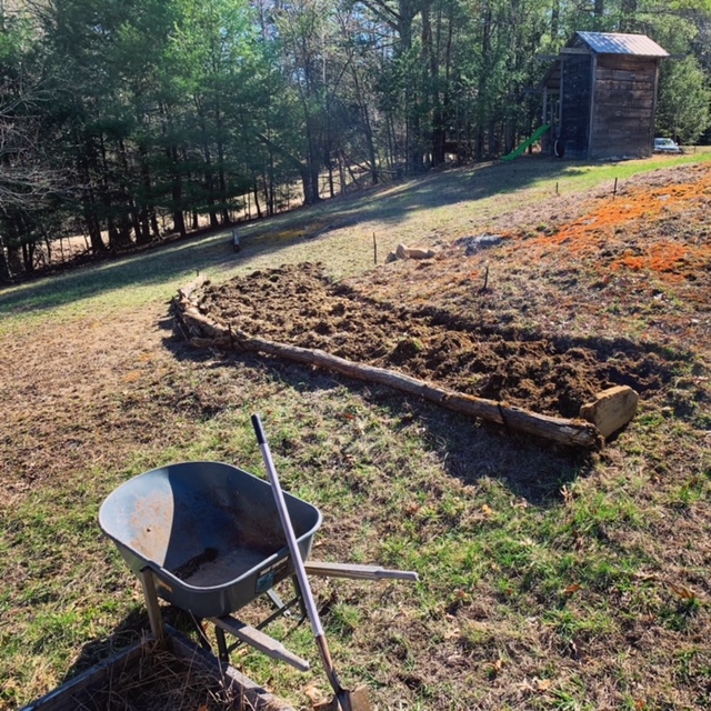 - Broke up soil, excavated (by hand) and prepped bed for backfilling garden soil and planting next week