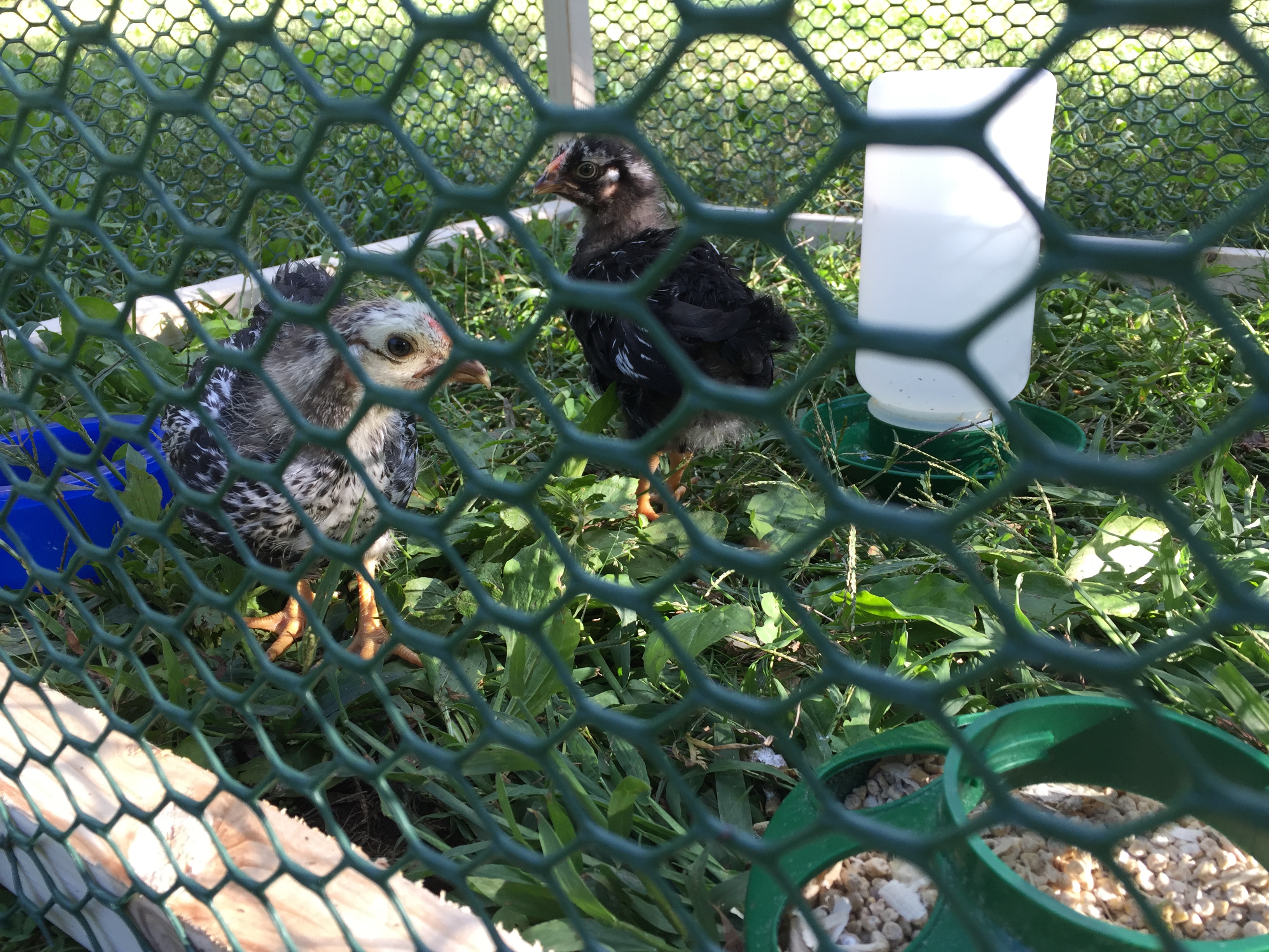 - Larger waterers and feeders for when they go outside at 4 weeks (or once their feathers are in)