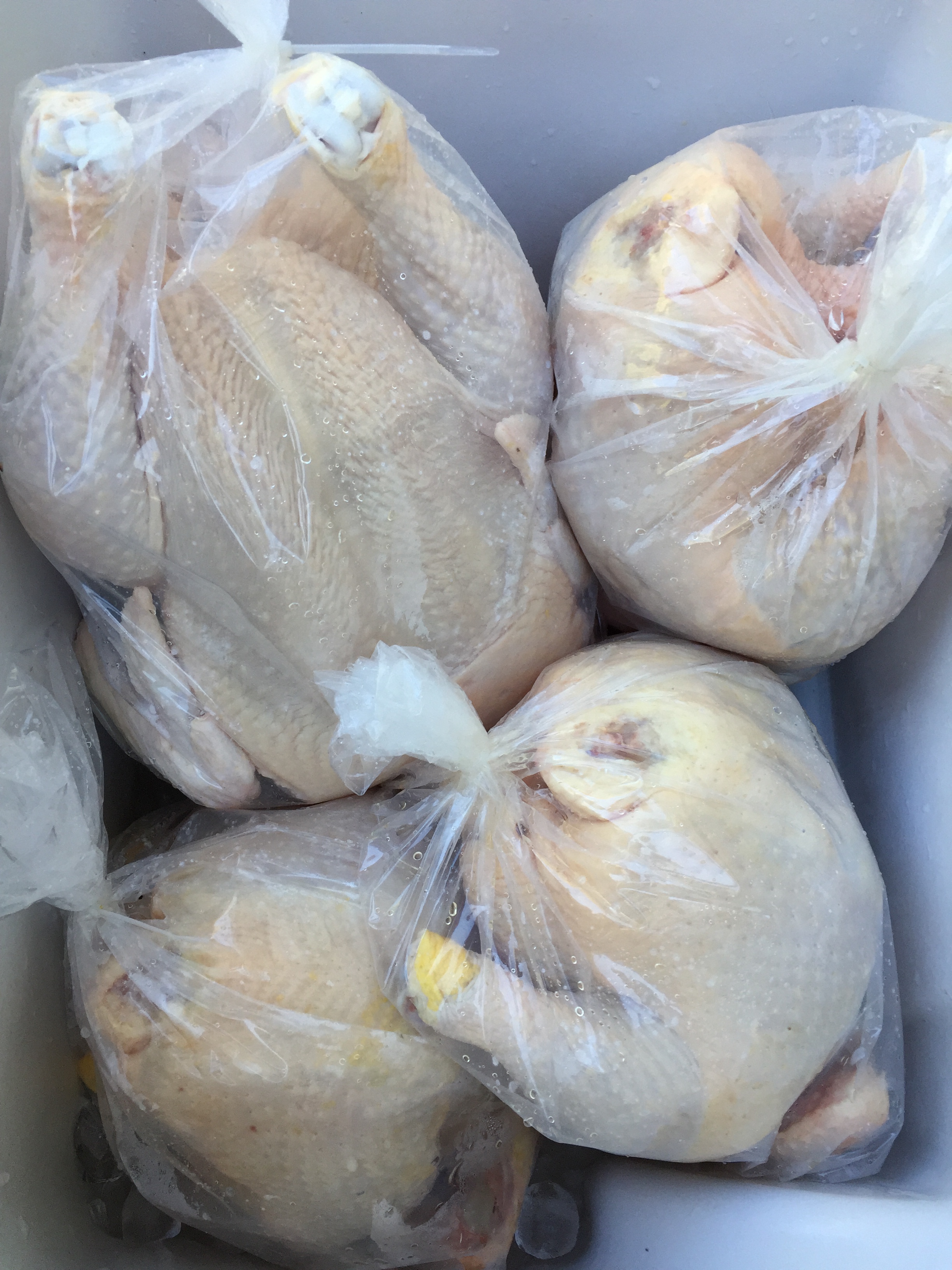 - Processing of meat flock. Based on the breed, you will need to make sure you are prepared to process on TIME. Letting your flock grow too big or for too long is never recommended. The health of a bird should never be sacrificed to wanting a bigger roast. Process ON TIME and appreciate what you received. Our CX average dress weight was 6-7lbs (we had one that was near 9lbs and had bowed legs…. that is probably what had us decide against raising them again) and our FR (Freedom Ranger) dress weight was 4-5lbs. The difference is in the activity and diet of the bird. Meat birds deserve their own post in the future though.