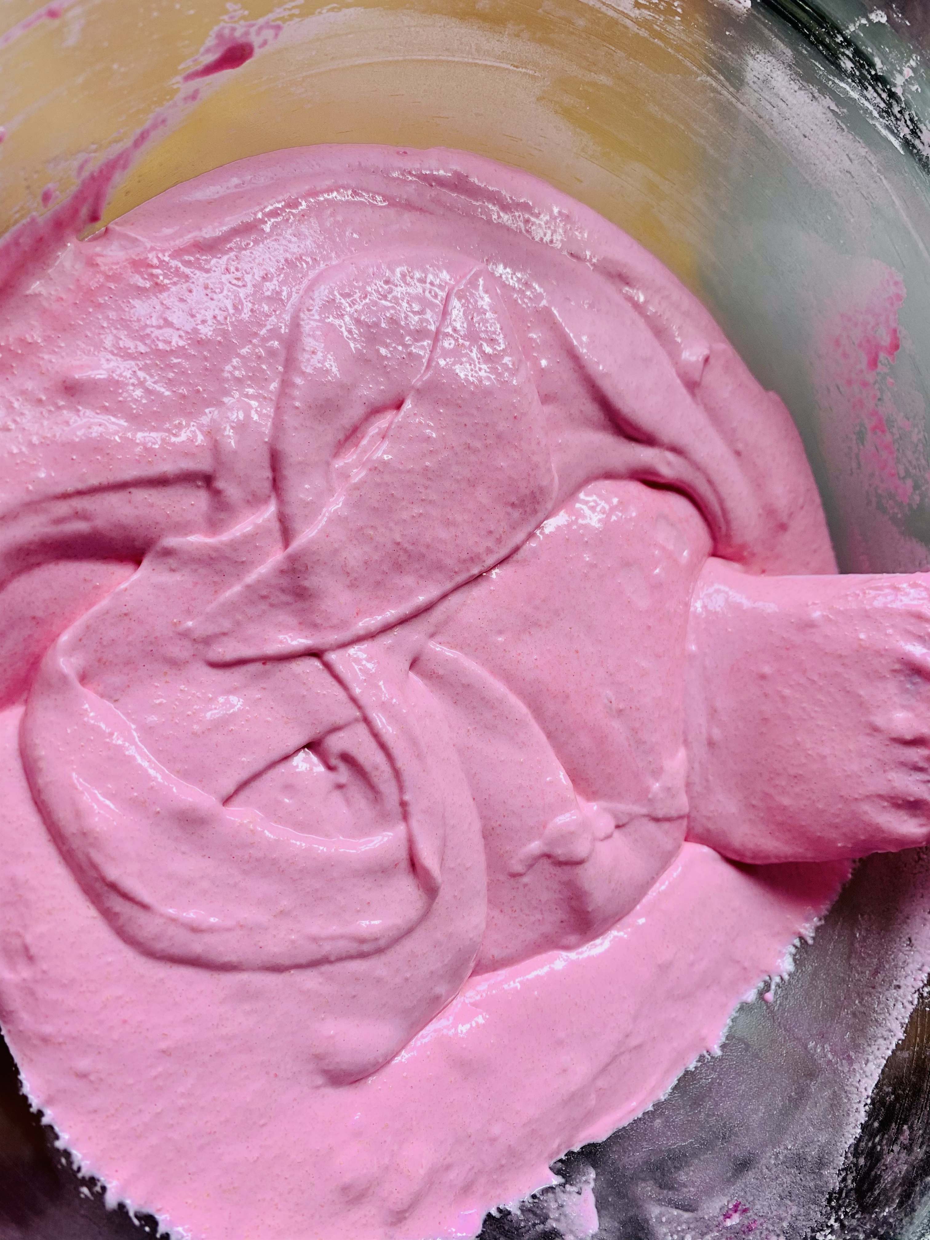 - Take the 82g of room temp egg whites and mix into the dry ingredients. It will form a thick paste. (NOTE: it is at this point, if you are coloring or tinting your shells that you would add your gel coloring. Gel coloring maintains color better during the baking process and will also last you a LONG LONG time.)