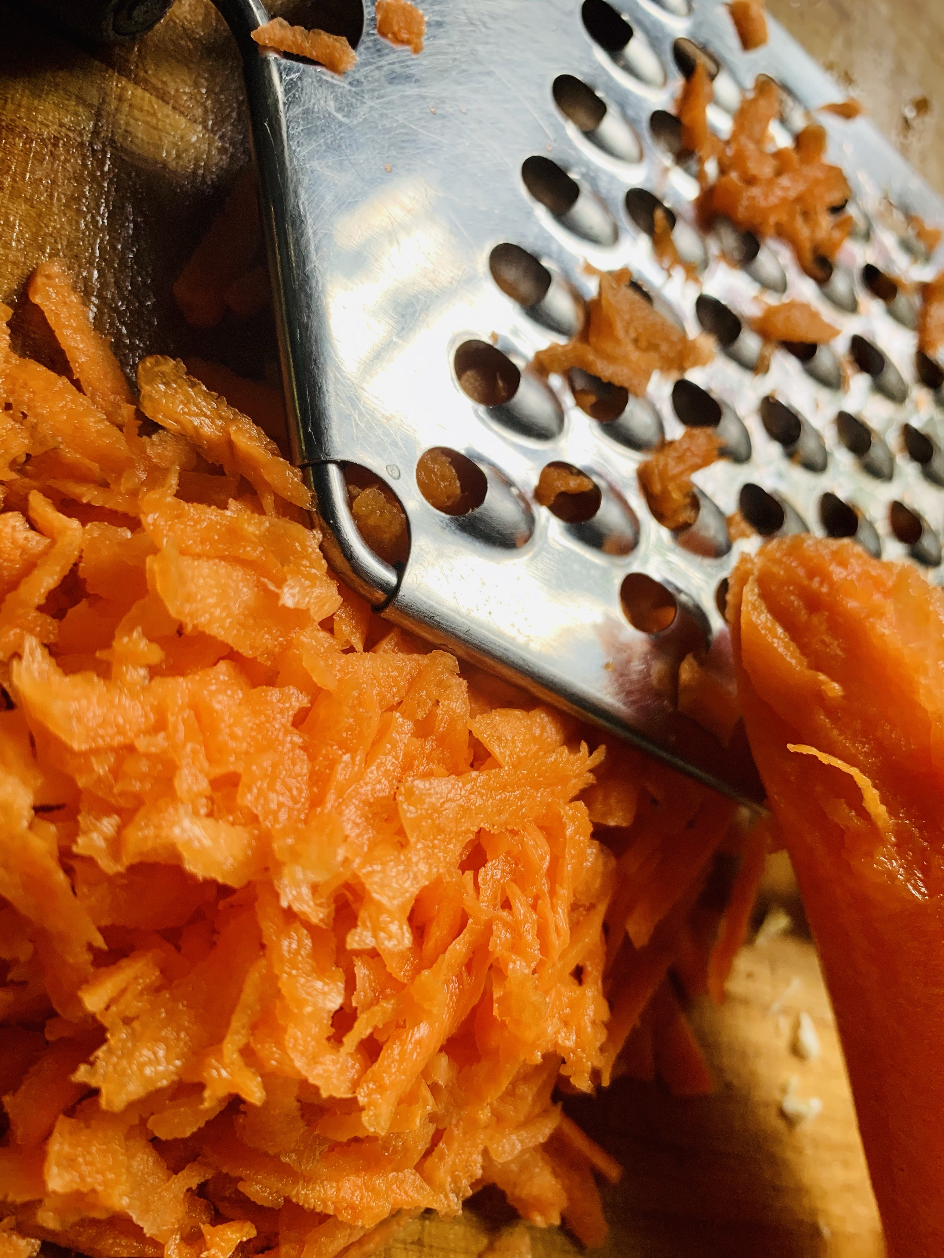 –>2 nice sized carrots (left in the pack after steaming the toddler’s veggies for the week.)