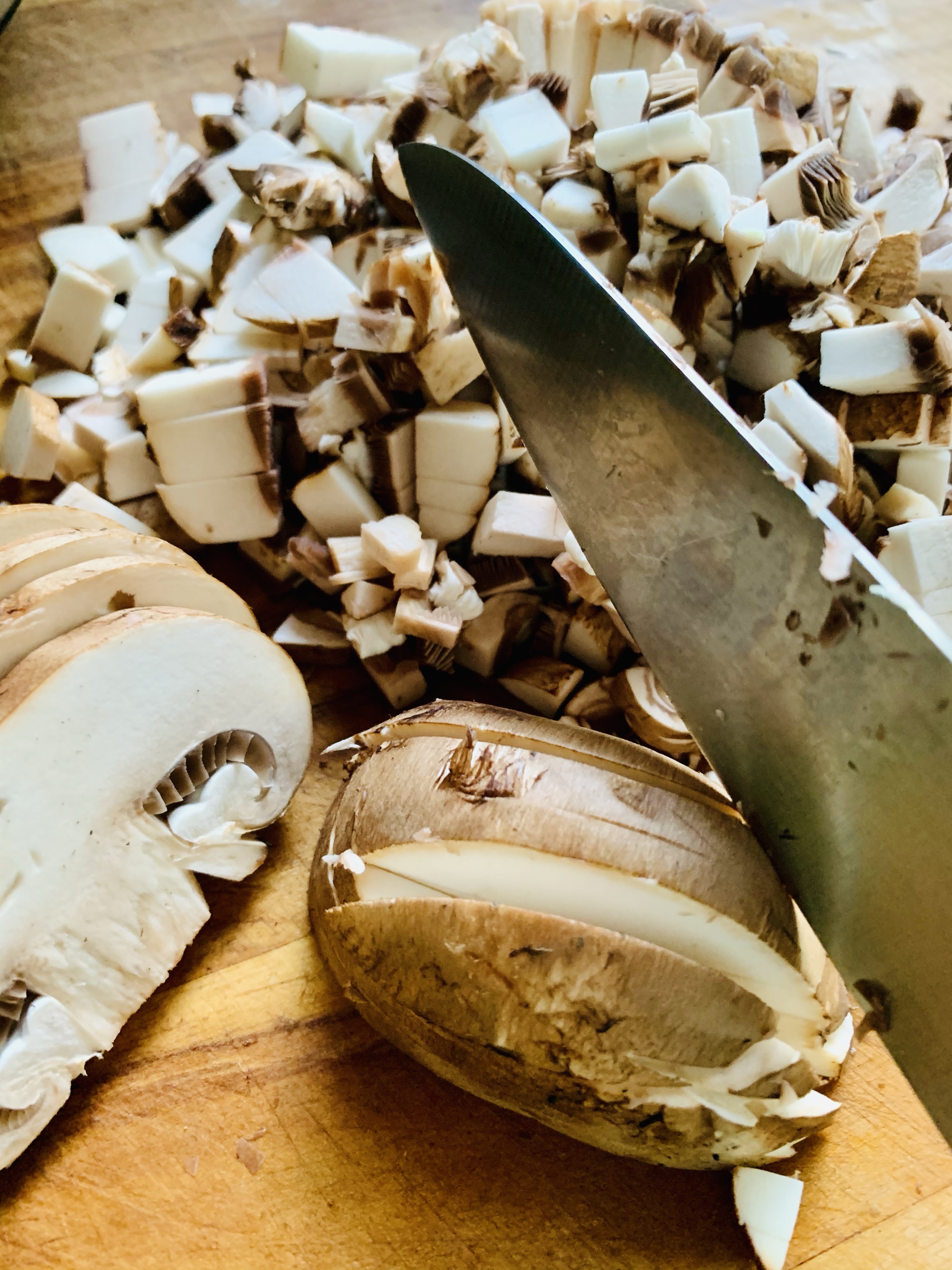 - 1/2 tub (8-10 oz -ish?) of baby bella mushrooms, diced