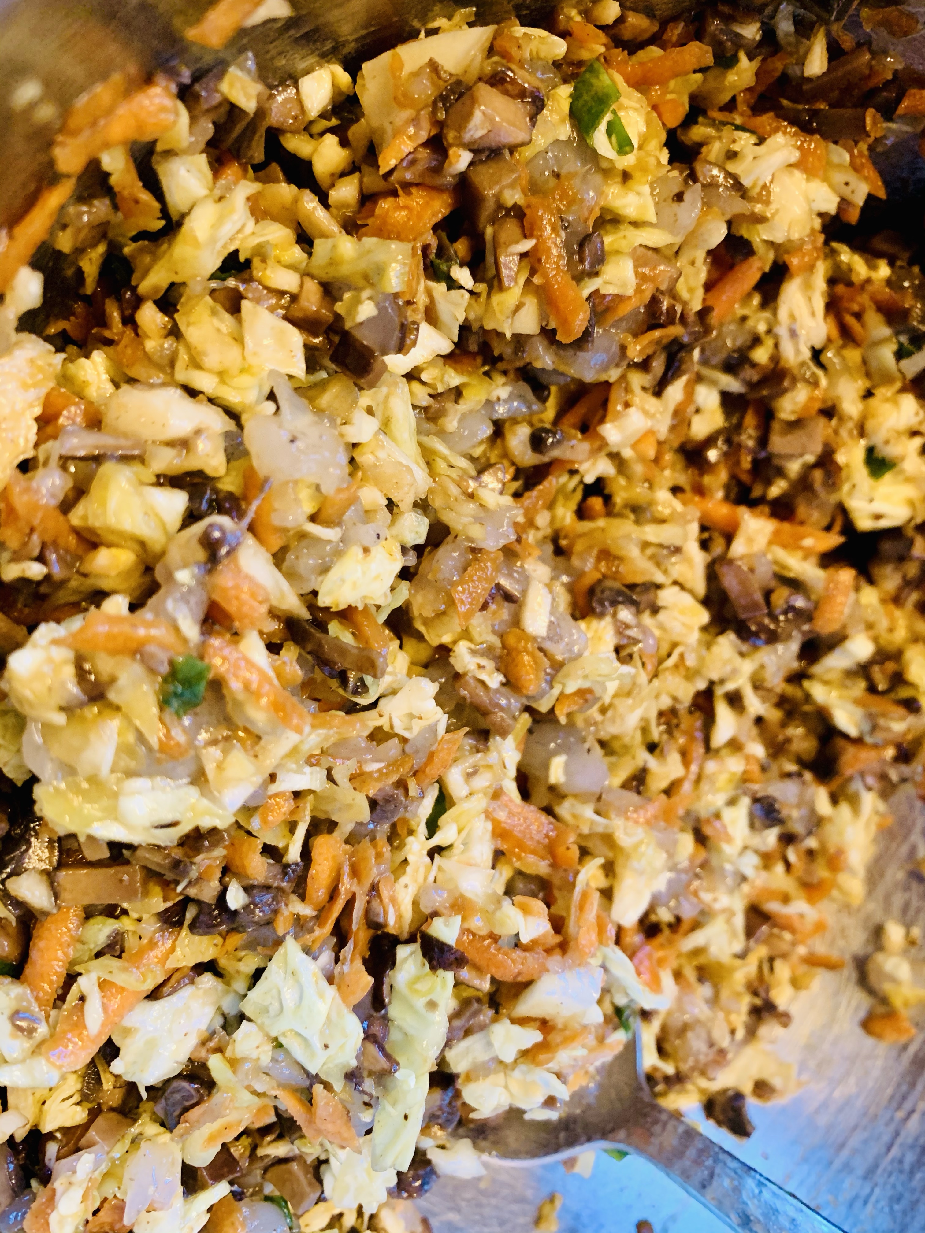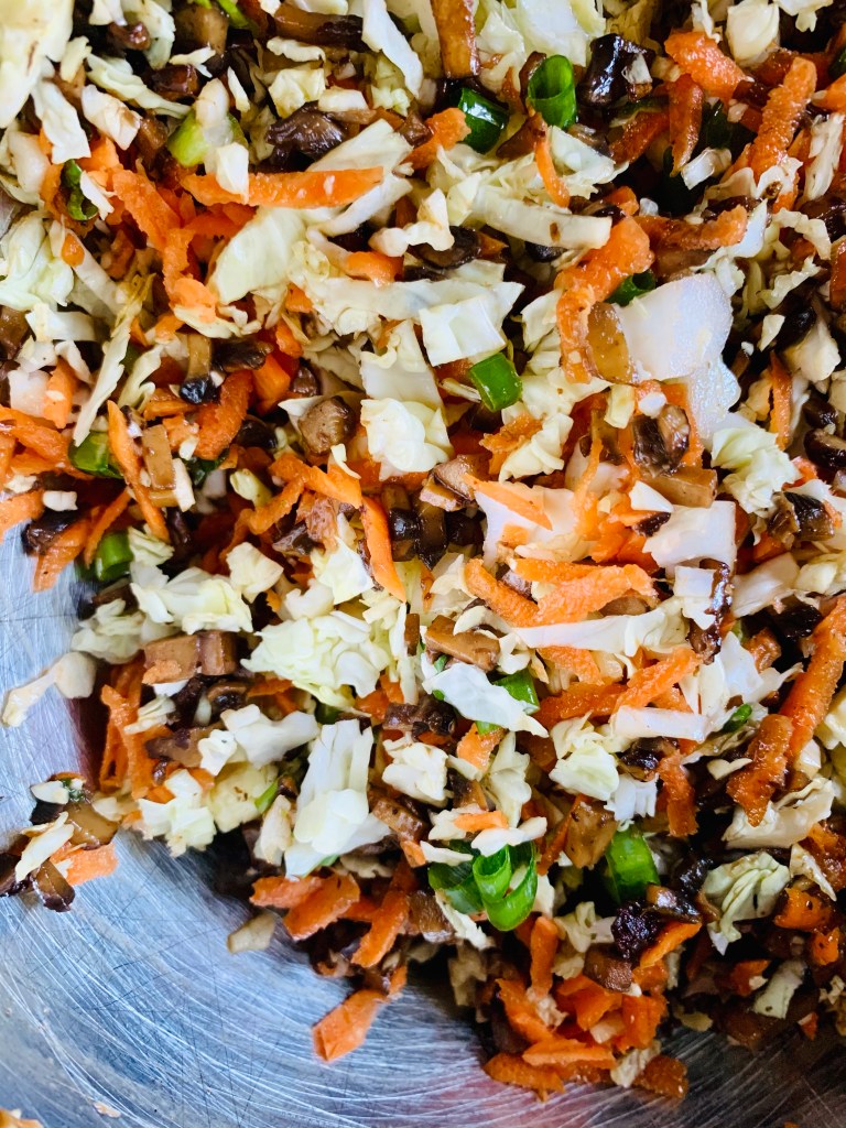(psst: on the super secret low low –> this is a PERFECT veggie mix base and seasoning for ANY dumpling… be it turkey, chicken, pork or even tofu. Double up on mushrooms or carrot and make it all veggie… it’s THAT good. I’m making turkey dumps soon since these were amazing!)