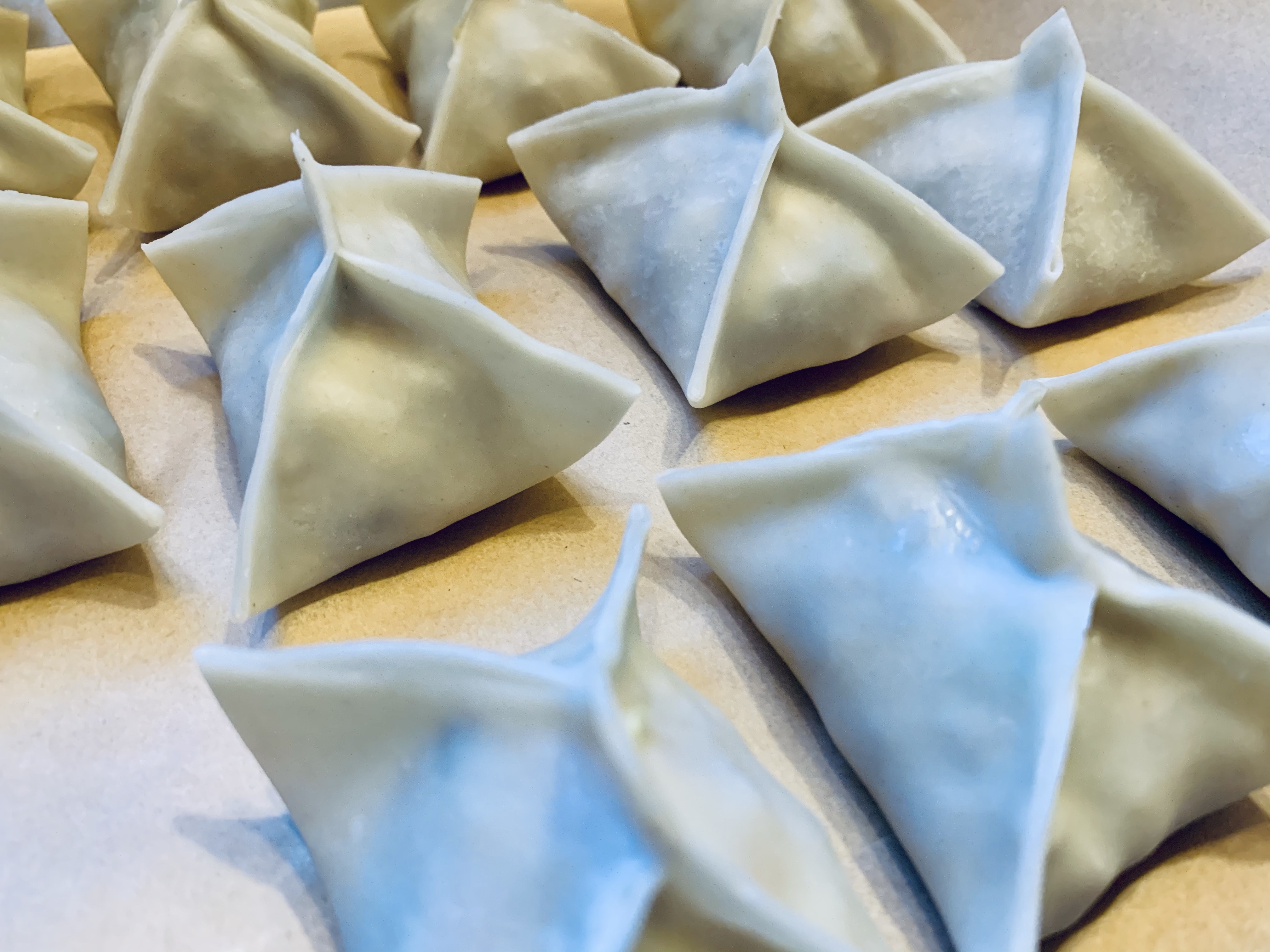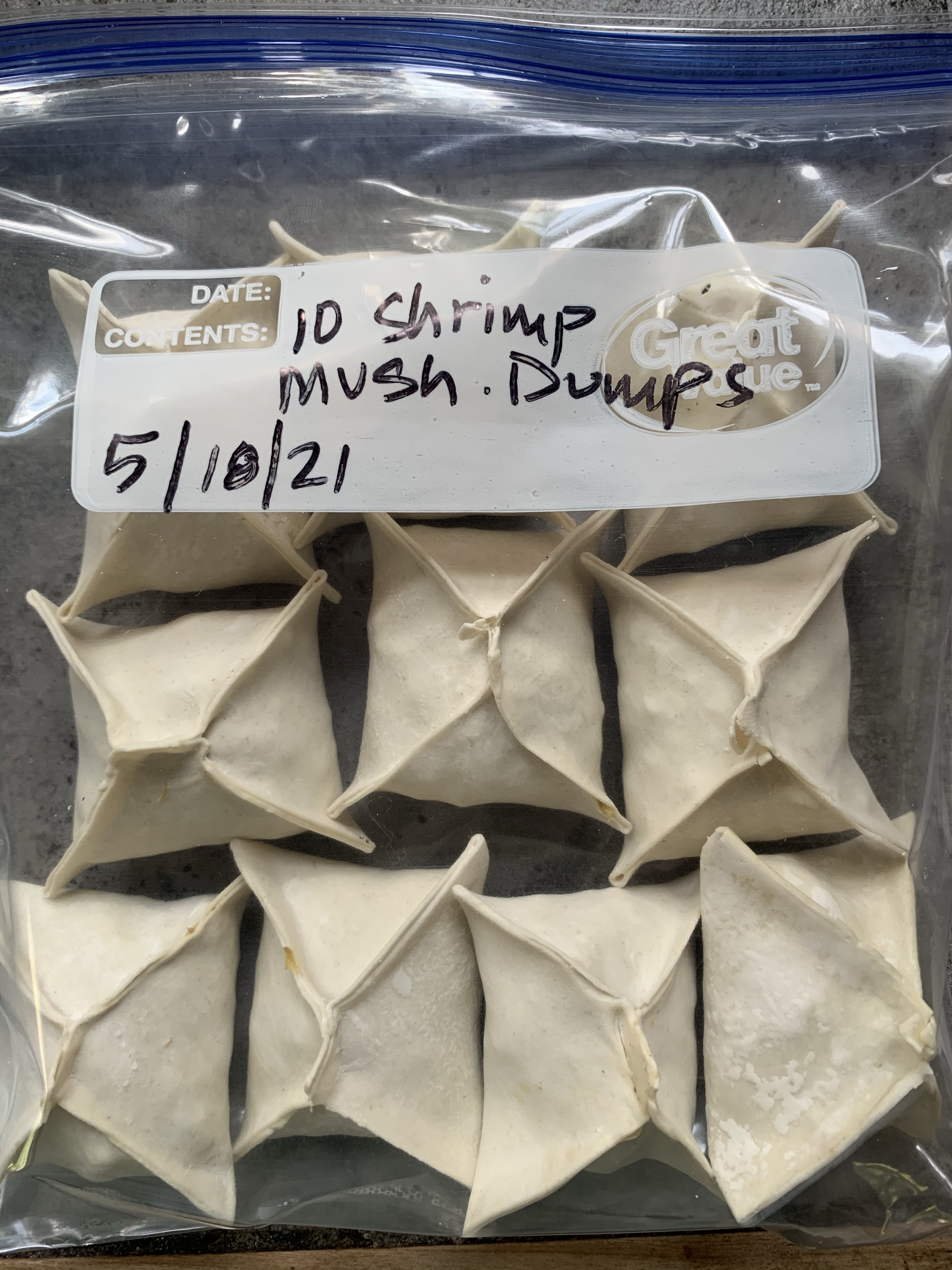 You can also challenge yourself by learning a new fold… I made these late so I opted for a quick fold and whipped out about 50 of them. Our serving size is about 8 dumps. 🙂