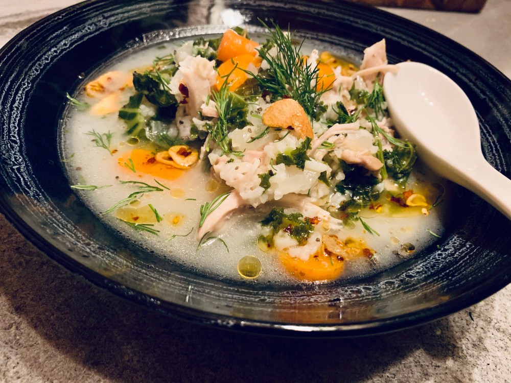 –> Making some of THIS amazing soup? Drizzle a tsbp with crisped garlic on top to finish it along with some salt and lemon – Chicken and Rice Soup