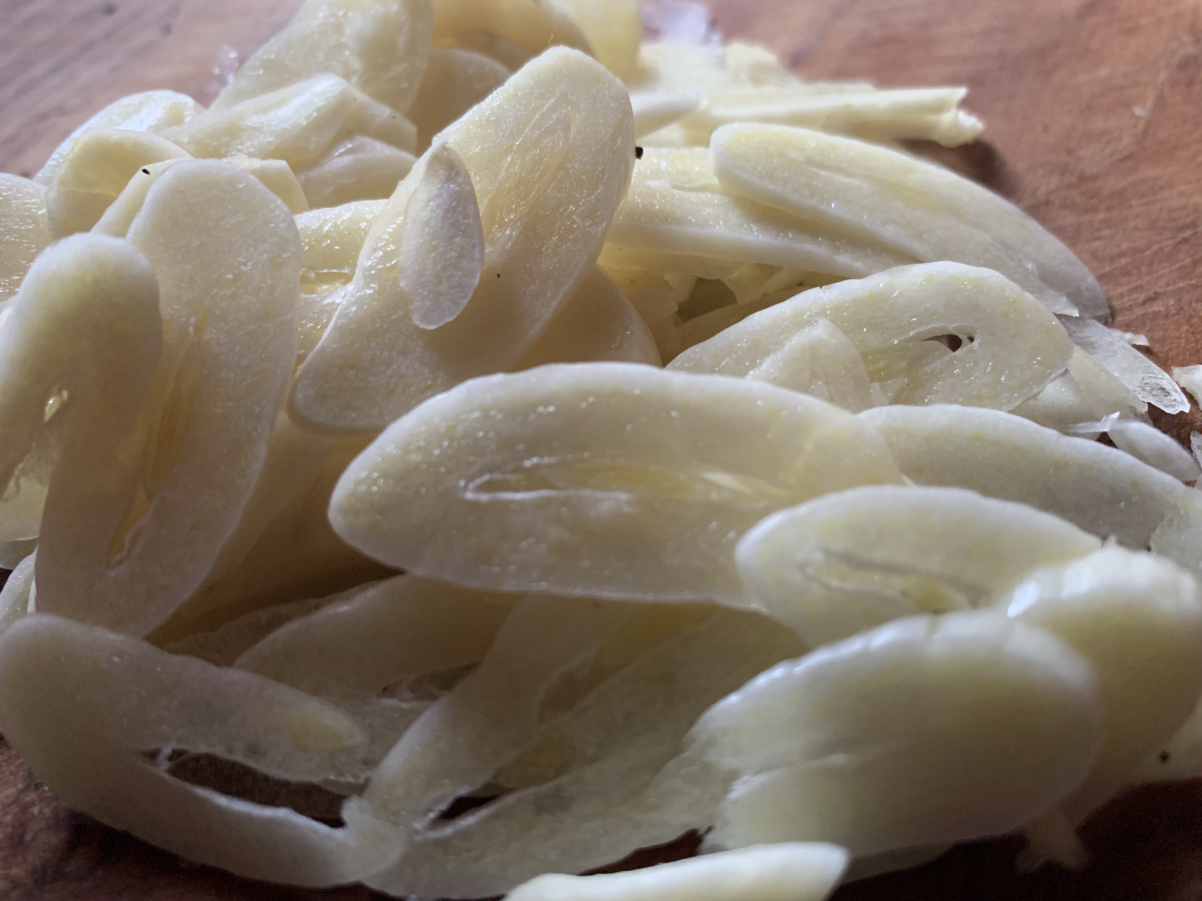 (ALSO NOTE: For those considering canning this oil for long storage, the USDA had tight guidance around canning raw garlic due to botulism. Most guidance you will find on infusing oils is around using the garlic, herb or veggie FRESH, however even fried or roasted, garlic can still harbor it. While we have never encountered any sort of issue with this recipe, as the garlic is fried to a crisp, placed in oil and stored on counter in an airtight container, this is NOT a recipe we would recommend making a TON OF and keeping for more than a month. As it’s a simple preparation and consumable on so many things, we recommend only making enough for a week or two. This recipe is for that amount. We always go through ours in 2 weeks… maybe 3. Then just make more! The most common time constraint out there for crispy fried garlic chips or oil is 1 month, although ours never lasts that long!)