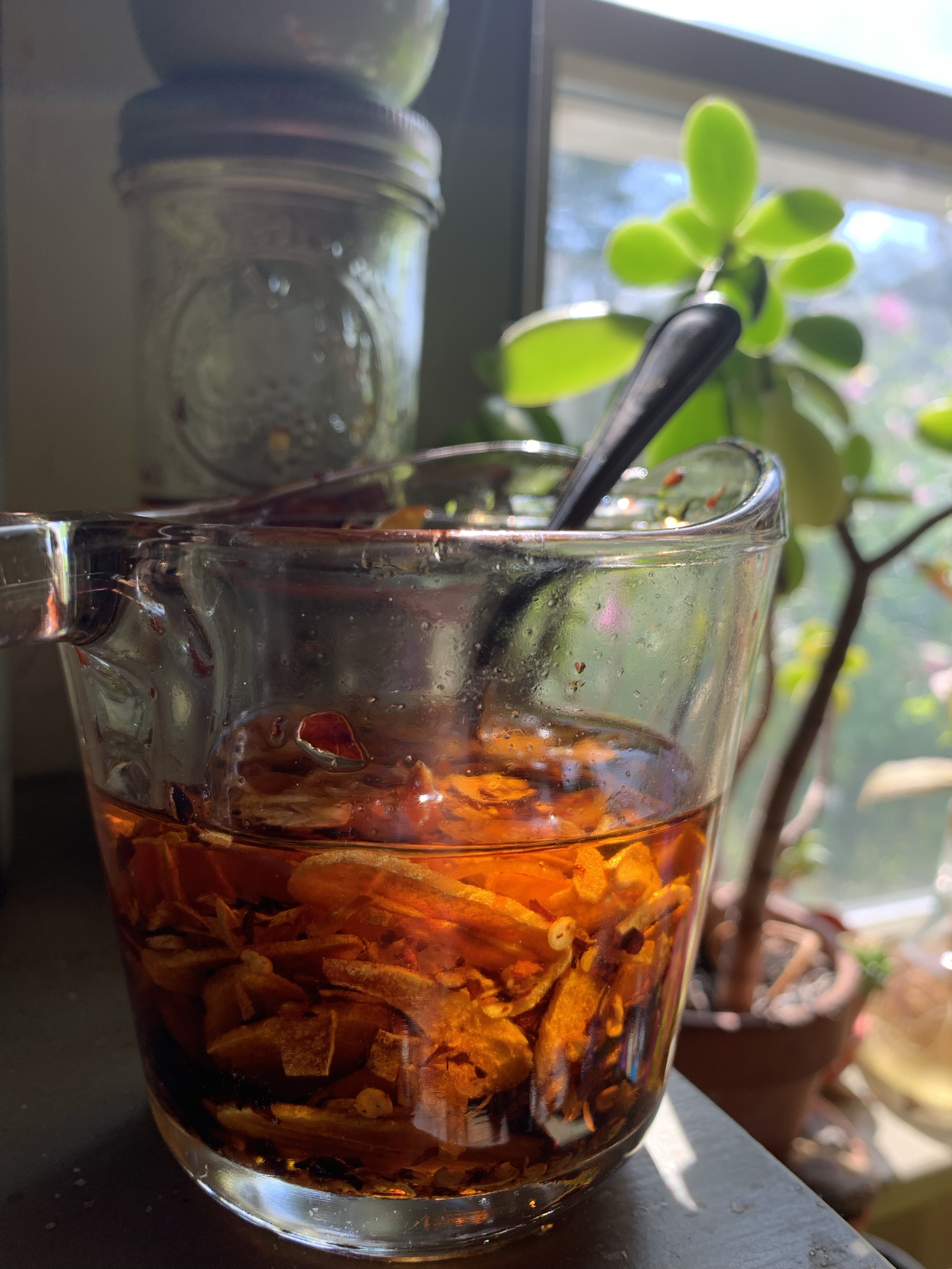 –> Nuking up some store-bought wontons for a mindless dinner? Drop a tsp of the oil into a tbsp of soy sauce for a great dipper!