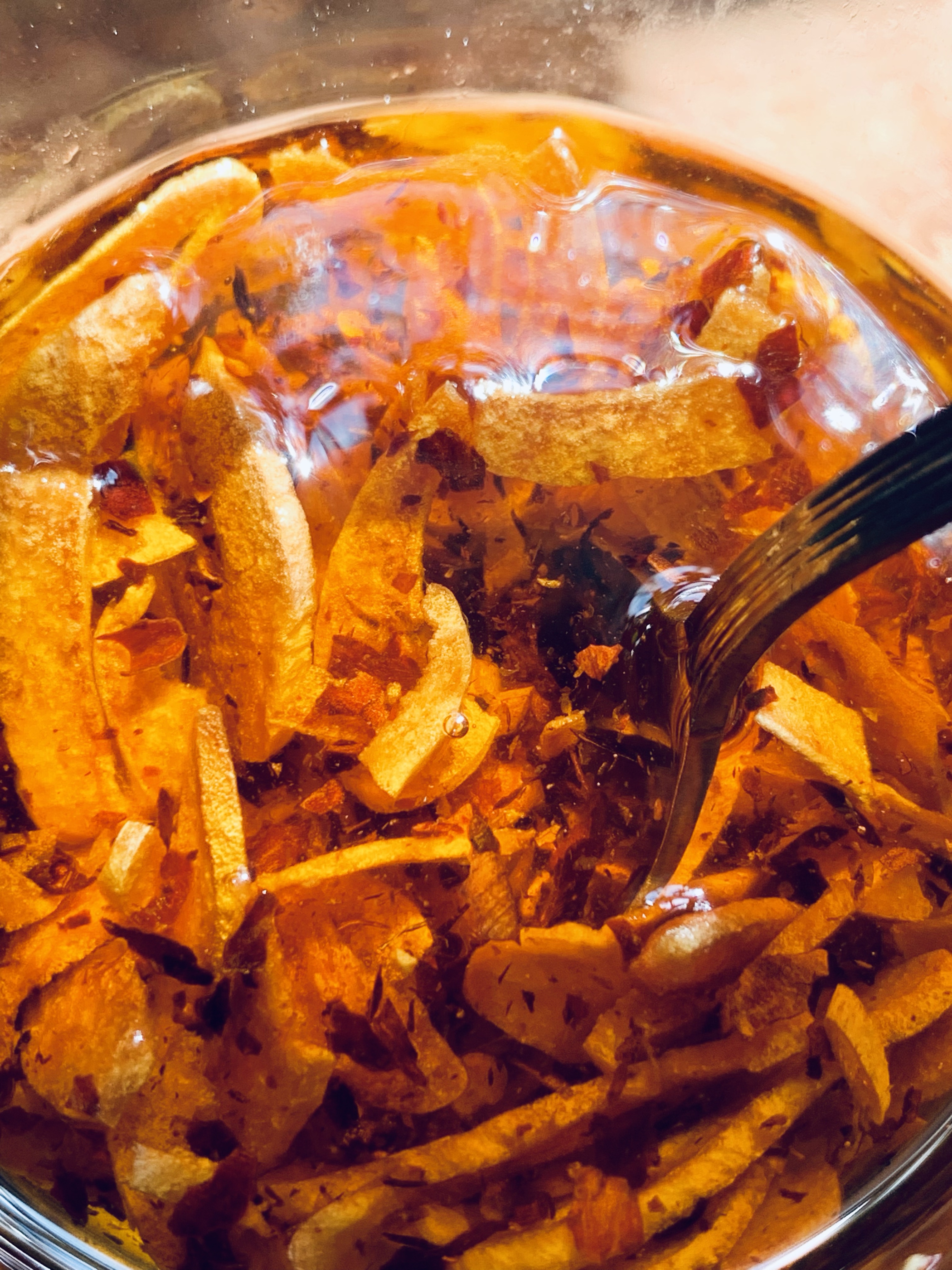 –> Want a simple pasta? Boil up some bucatini, toss in lemon and parmesan and then finish with this oil… it’s AMAZING.
