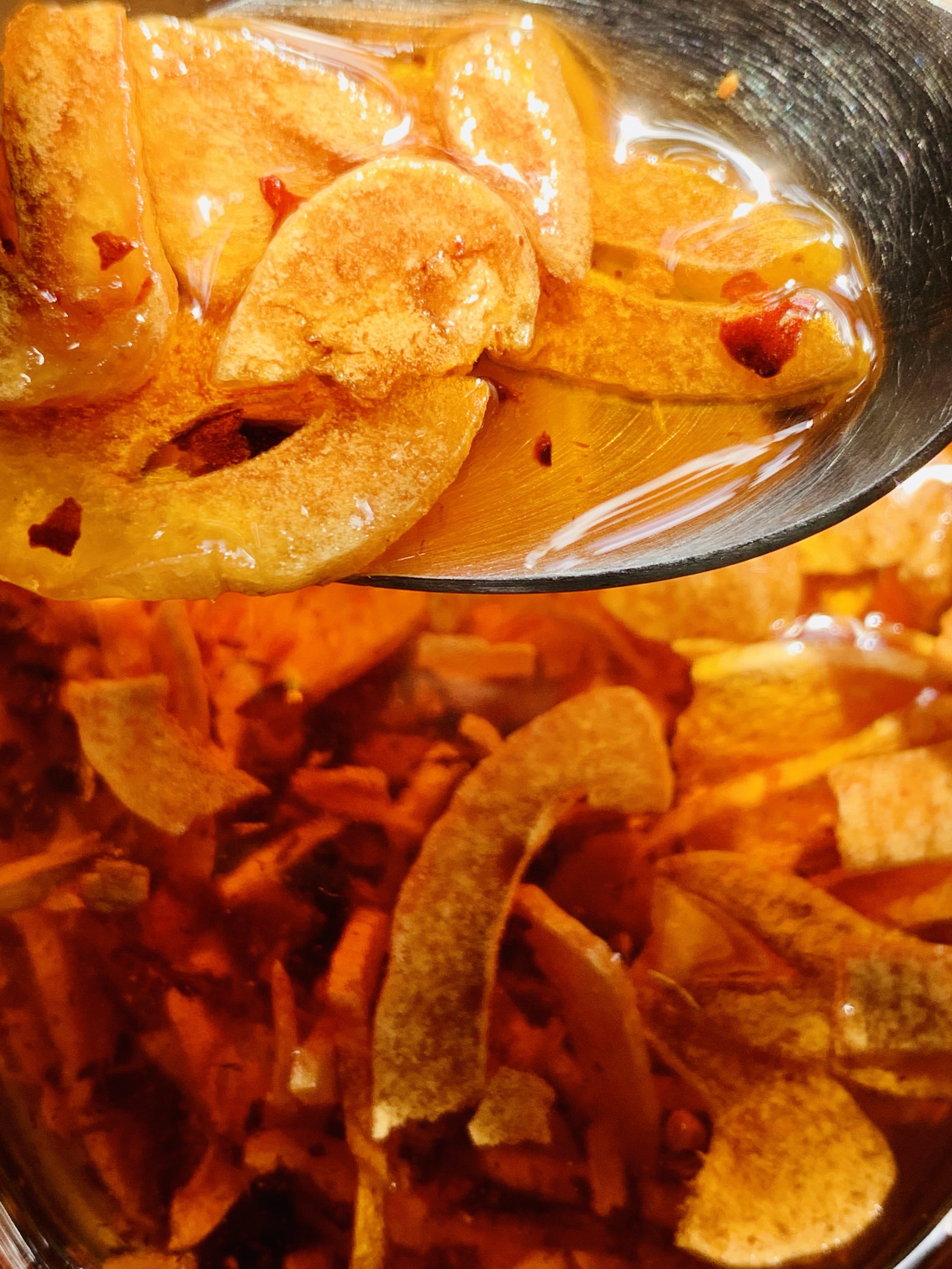 As most of you now know, I love growing garlic and growing hot peppers. (I mean they’re in our Top 5 Crops to Grow list nearly every year!) One way to make sure you don’t waste any bit of what you grow is to use the ‘broken/damaged fruits or harvested but not able to be stored’ bulbs for other storable edibles – like OIL. This is one of those recipes… for the ugly fruits, the extra stuff you can’t think of how to use… for the bulbs you accidentally bruise or break (yes, I had some sloppy garden fork work on this year’s harvest… trying to film and fork ain’t easy, people) or just OLD garlic and drying out peppers. It happens *shrug*