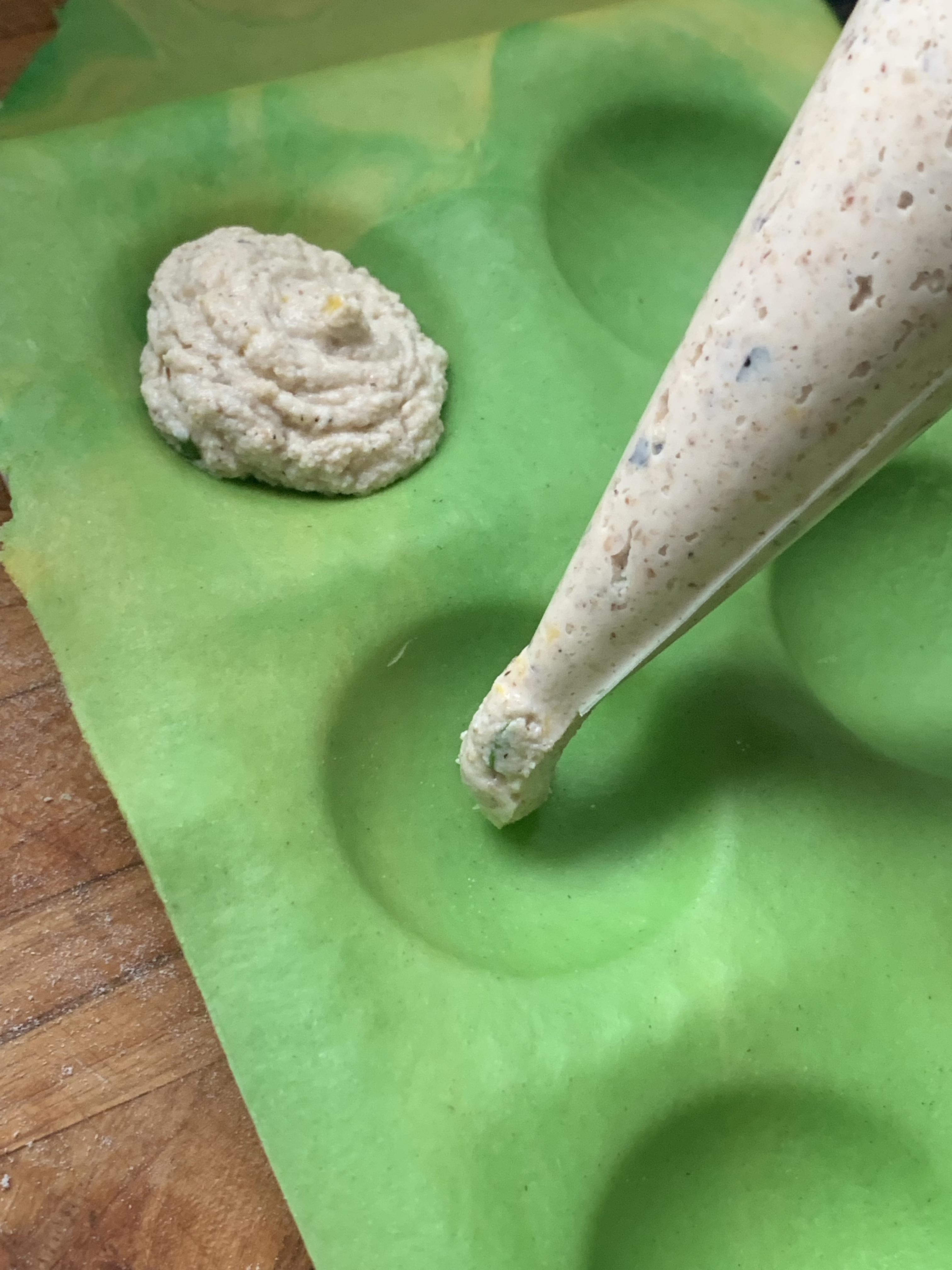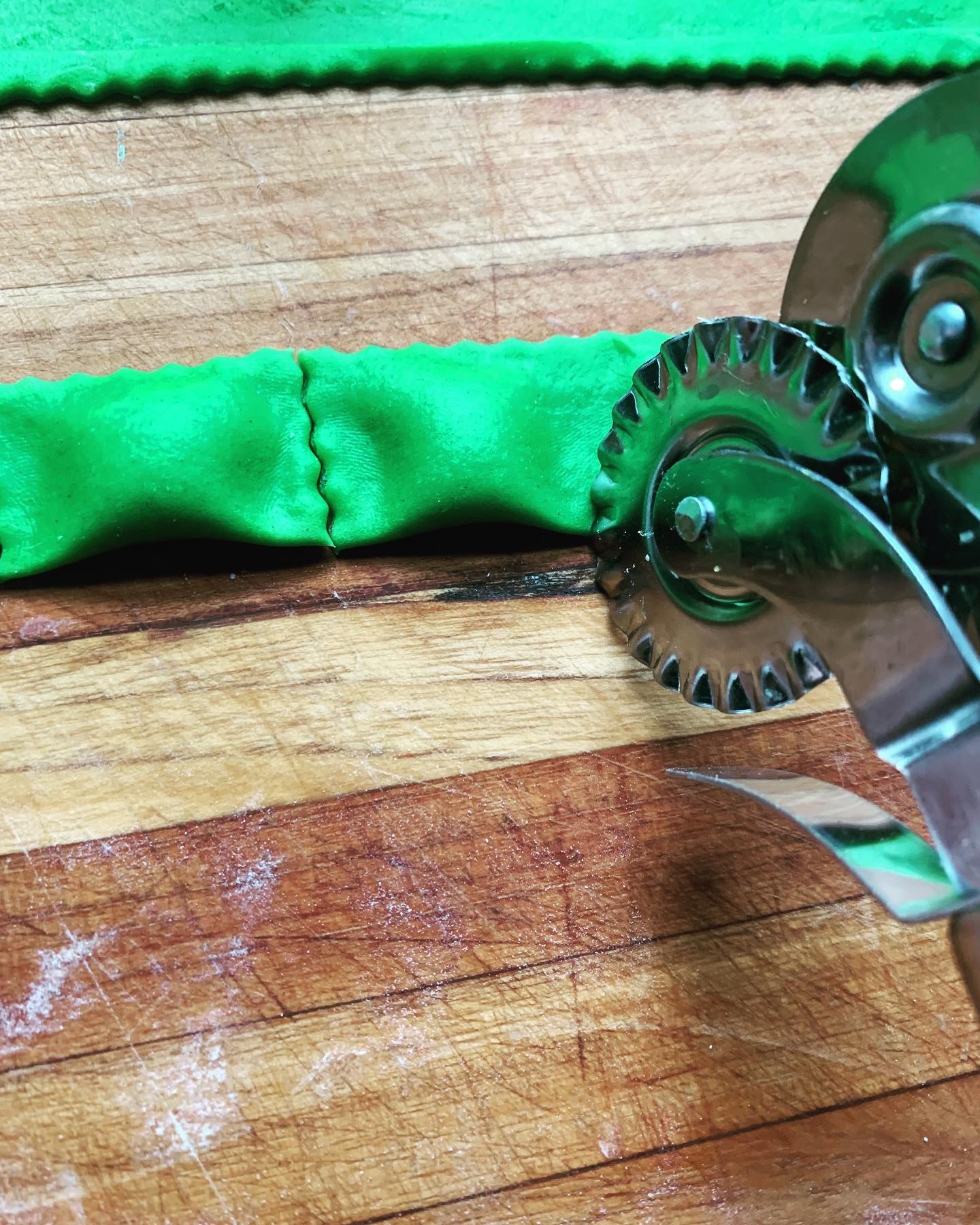 - You can use a small spoon to fill, but the easiest method is to use a small piping bag or quart sized baggie with the corner snipped off. The piping method gives you the most control over amount of filling (which depending on the type of pasta you are creating, is VERY important! Overfilling can cause your pasta not to seal correctly and come apart when it is put in boiling water!)
