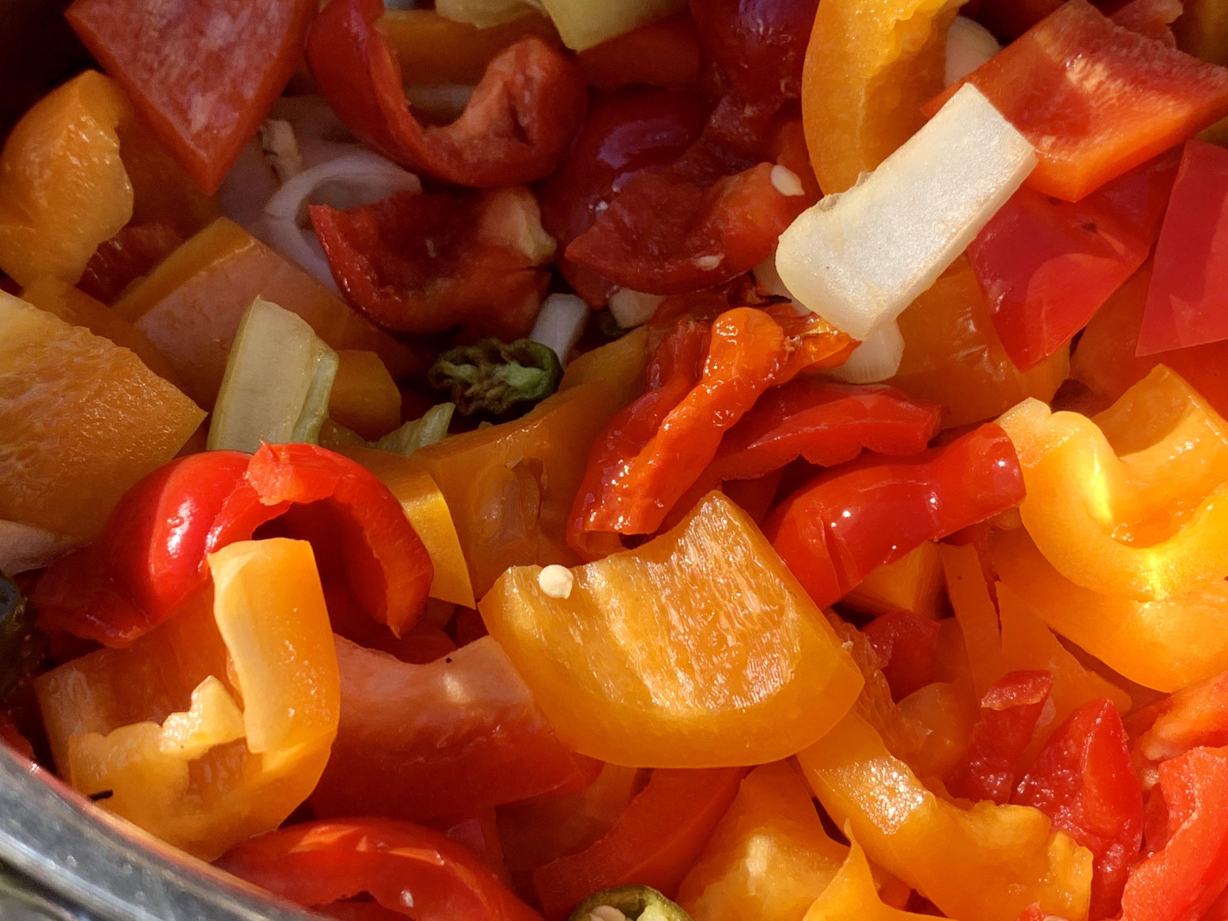 - 5 Shishito peppers, chopped (OPTIONAL or another non-hot snacking pepper… NOT a green bell)