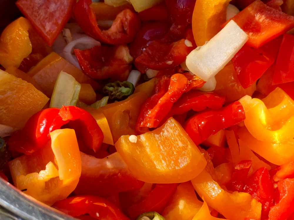- 2 Large Red Sweet Peppers, de-seeded and roughly chopped
