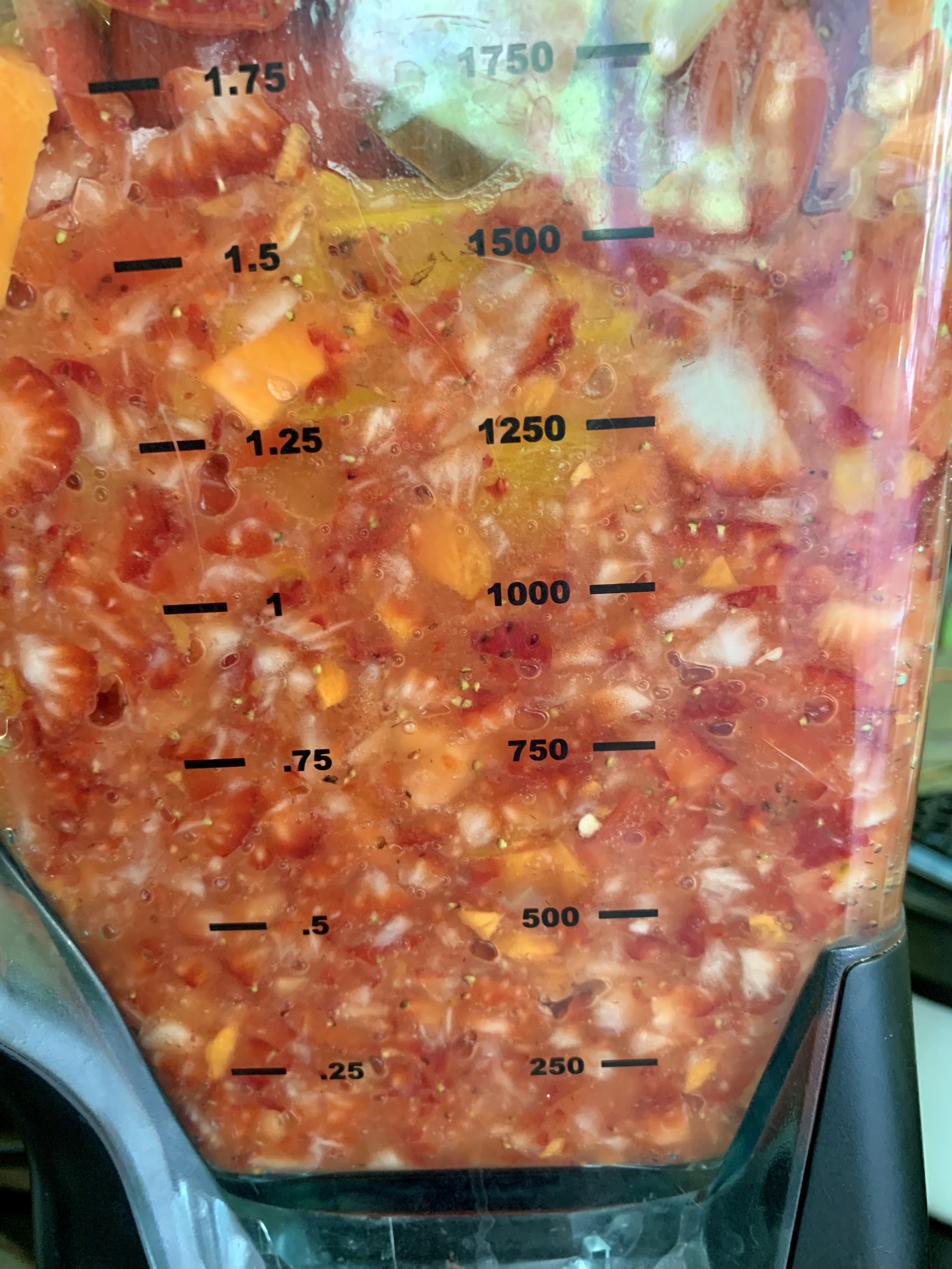 - Add remaining ingredients to mixer and quickly pulse to break down a bit.