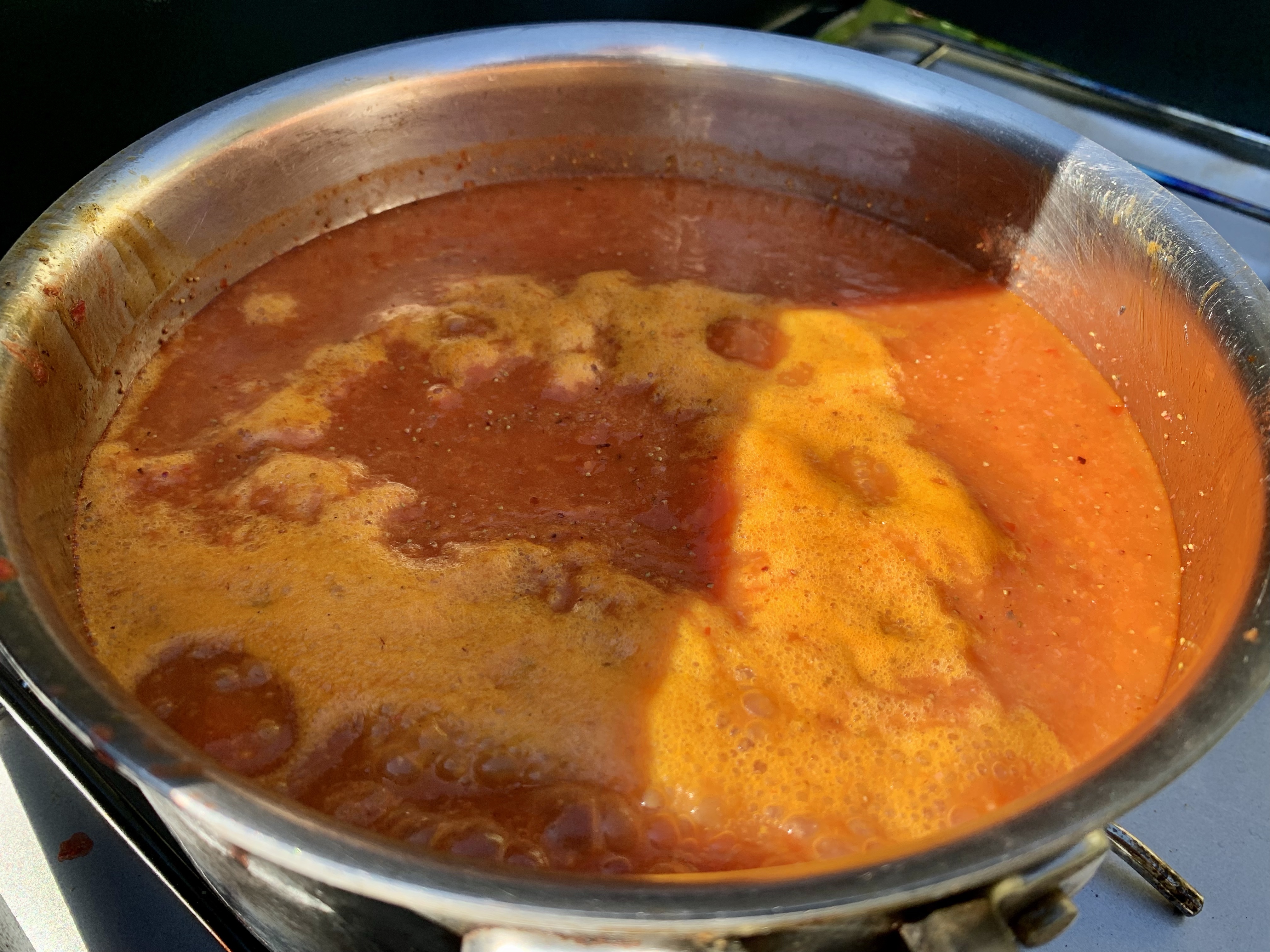 - Return the blended sauce to the sauce pan and turn burner on low/medium heat
