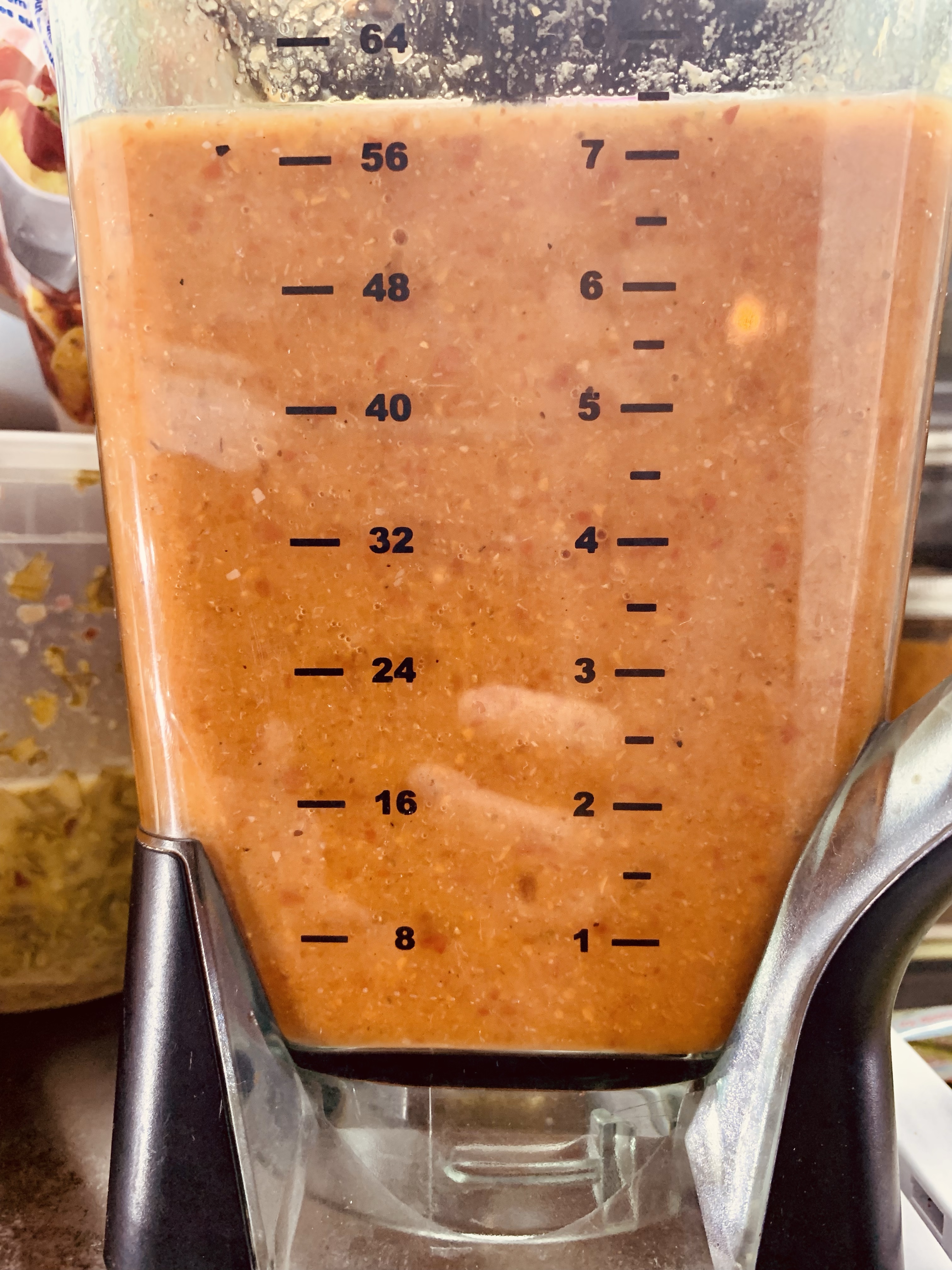 - Take cooked/reduced sauce and put back in blender and again blend for 2-3 minutes on HIGH SPEED.