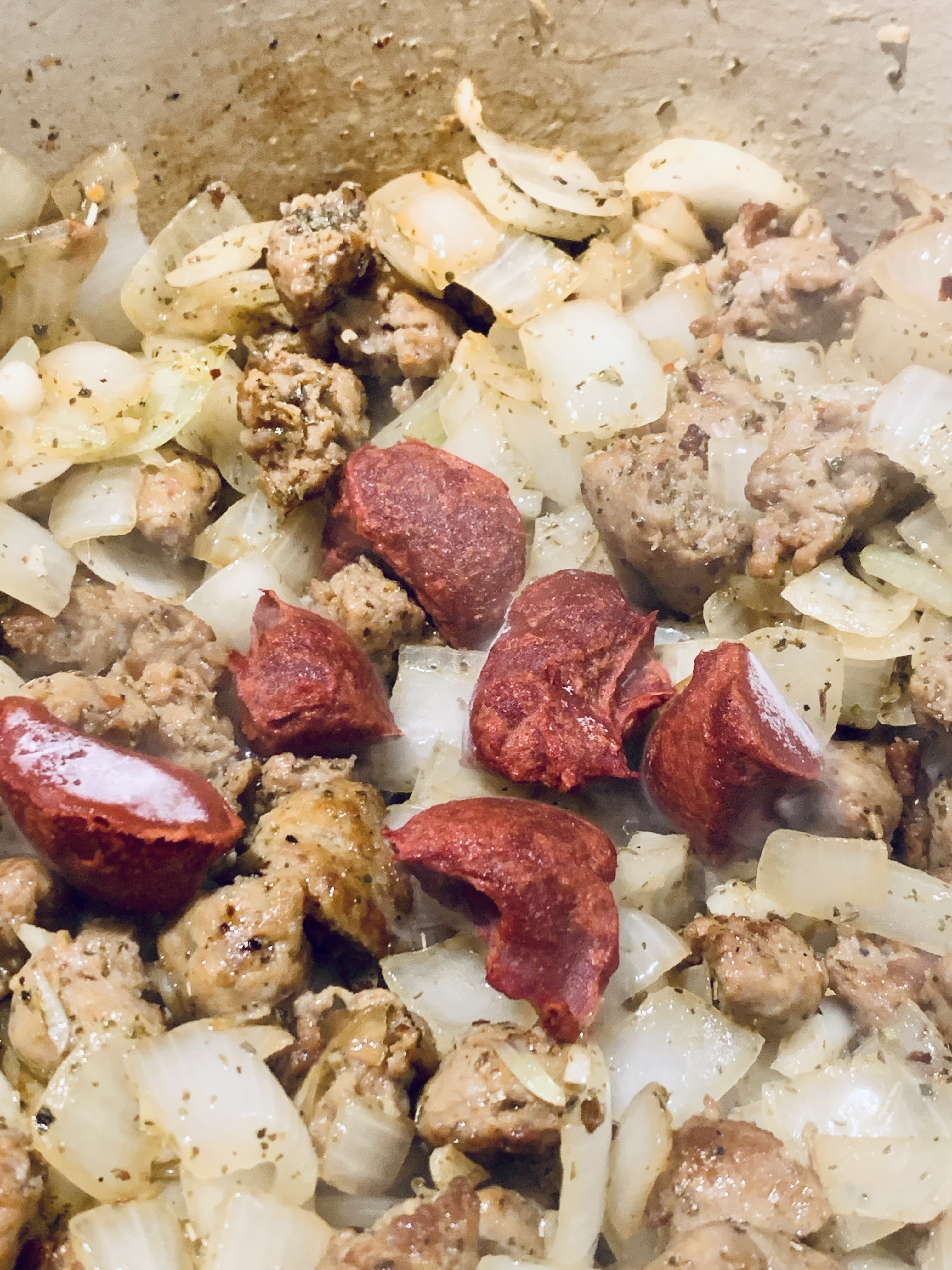 - 1 lb hot Italian sausage, crumbled or casings taken off and broken into small pieces