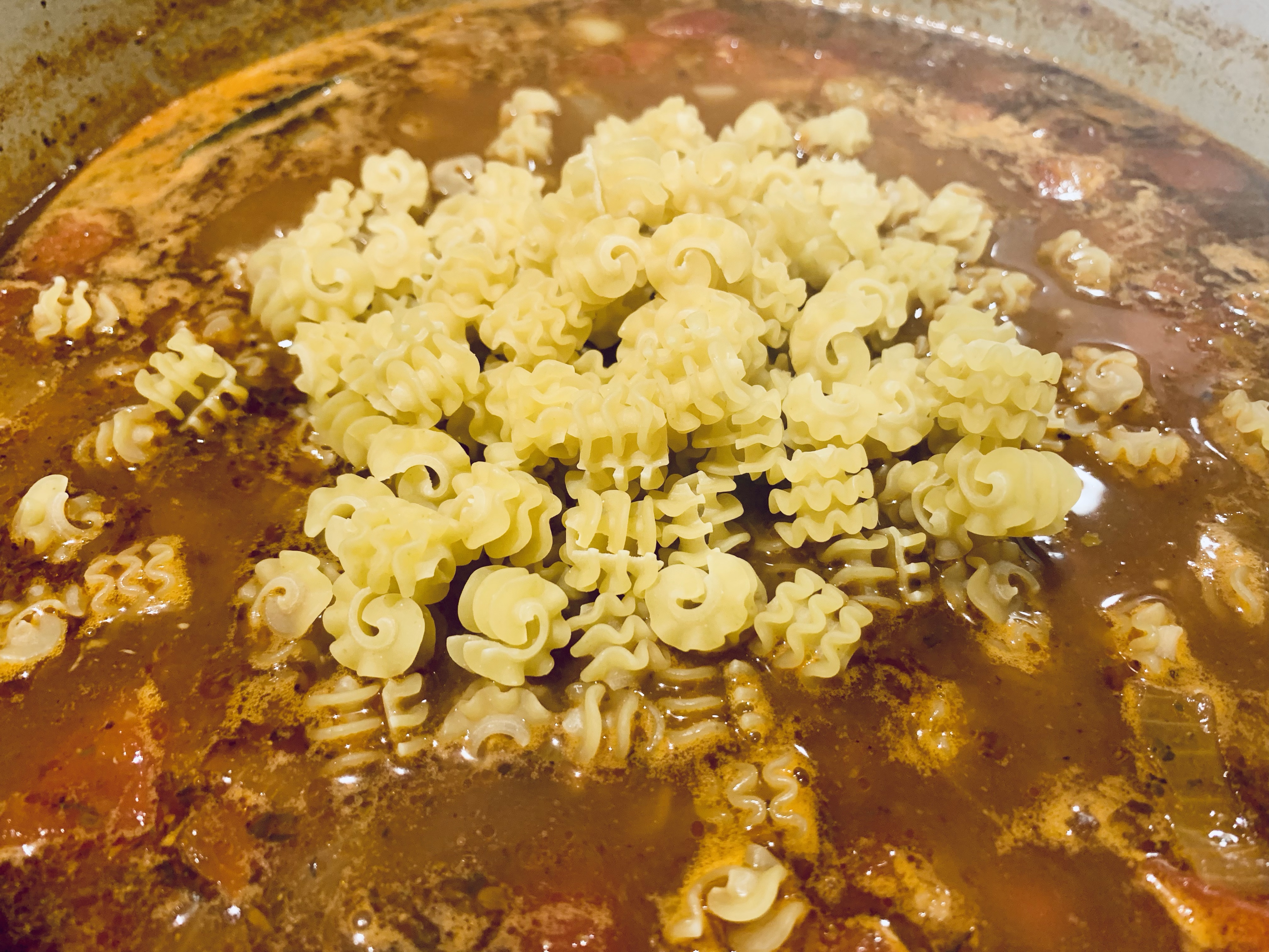 - 10 oz of ruffled pasta (Radiatori is one of my favorites for this soup simply because it HOLDS THE SAUCE BEST!) Any ruffly pasta shape will work, though)