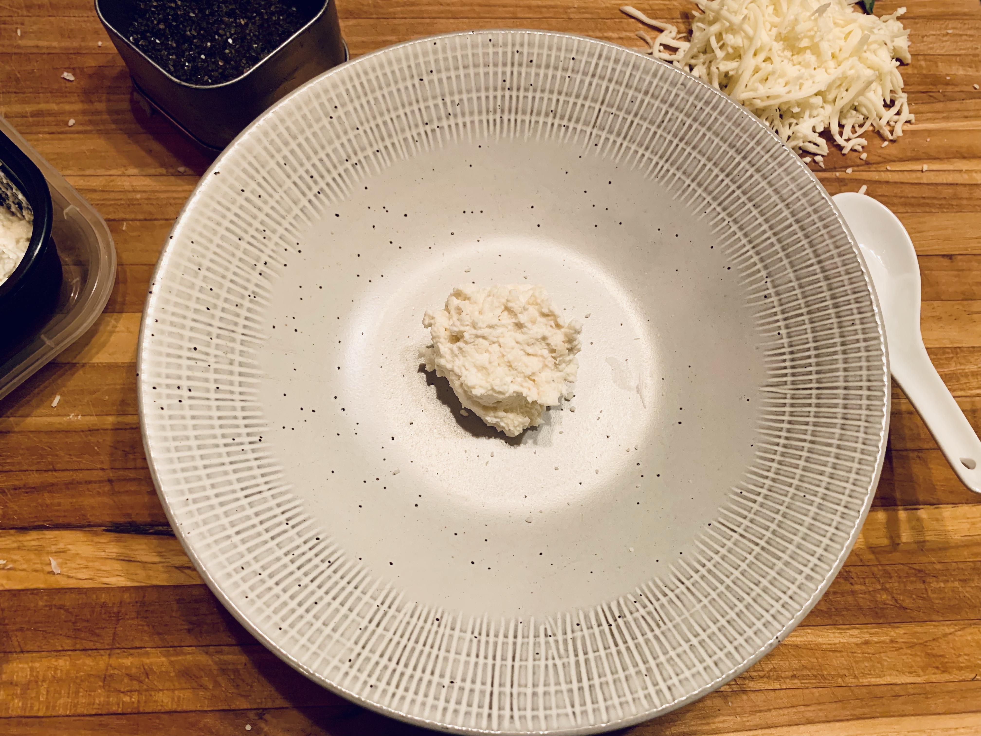 - In a nice sized soup bowl, place about 1 tbsp (or more if you are a cheese fiend) in the center of the bowl.