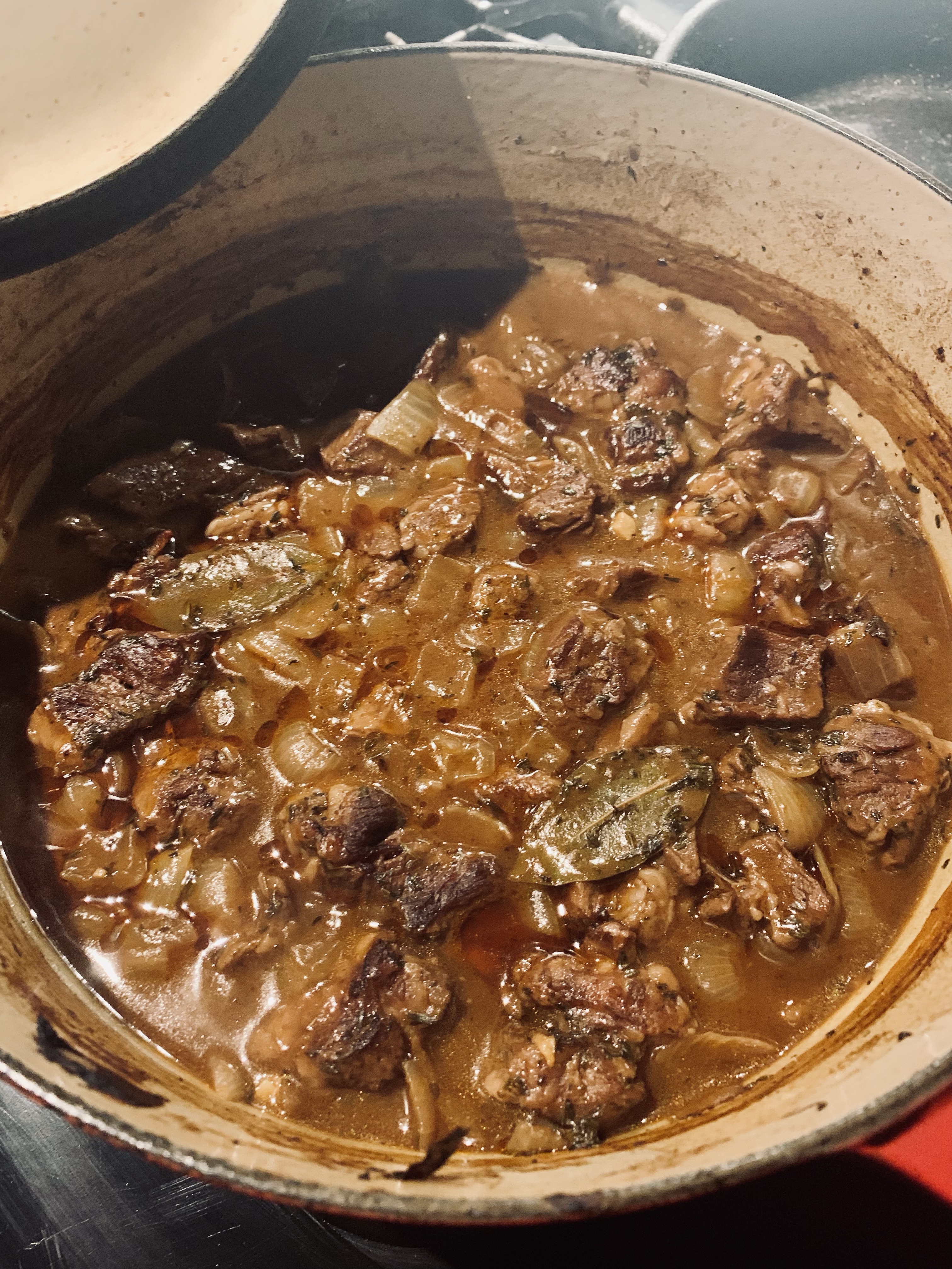 8. Braise for 2 hours. Let it be. It will thicken as it braises and you want to leave it alone, covered for the full 2 hours… NO PEEKING!