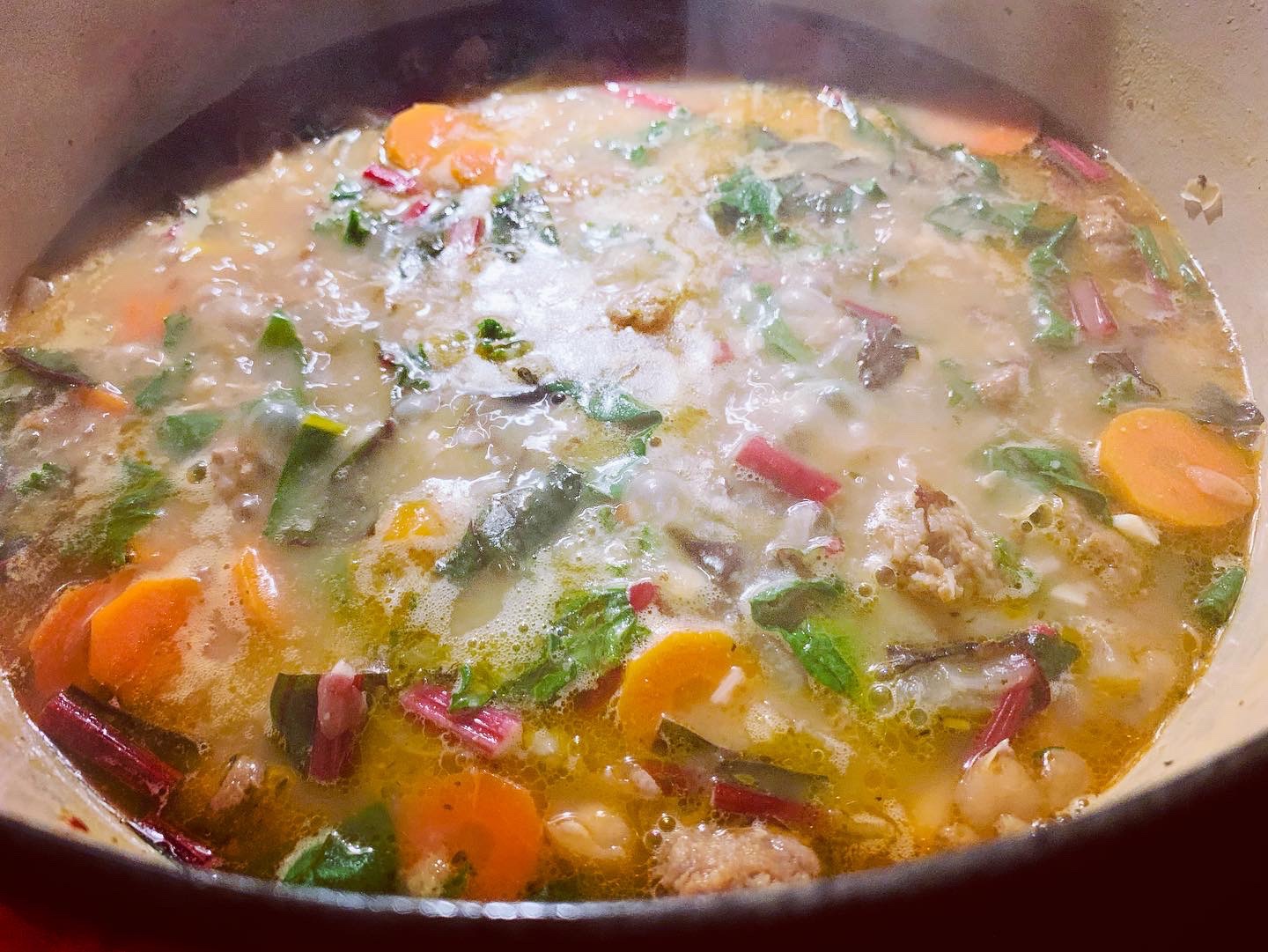 Spicy Sausage Stew (w/ white bean and chard) (makes 6 servings)